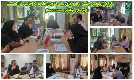 گزارش سومین جلسه برنامه ریزی برای تدوین چارچوب اجرایی فاز نخست طرح ملی نوآفرین صنعت ساز، روز ۲۶ شهریور با حضور معاون پژوهش و فناوری،معاون فرهنگی و اجتماعی، نماینده ریاست پارک علم و فناوری استان، مدیر مرکز رشد و فناوری، مدیر حمایت و پشتیبانی فرهنگی و اجتماعی، مدیر فناوری و ارتباط با جامعه و دبیرکل انجمن های علمی دانشجویی در دفتر معاونت فرهنگی دانشگاه برگزار شد. در این جلسه، حاضران به گفتگو و تبادل نظر برای نحوه اجرای فاز اول این طرح پرداختند که از اول مهر تا ۱۵ آذر سال جاری به مدت دو ماه و نیم به طول خواهد انجامید.