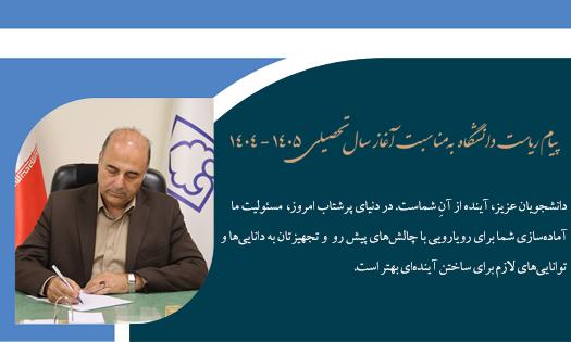 پیام ریاست دانشگاه به مناسبت آغاز سال تحصیلی ۱۴۰۵-۱۴۰۴