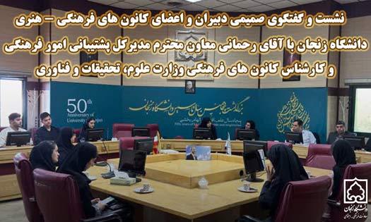 نشست و گفتگوی صمیمی دبیران و اعضای کانون های فرهنگی - هنری دانشگاه زنجان با آقای رحمانی معاون محترم مدیرکل پشتیبانی امور فرهنگی و کارشناس کانون های فرهنگی وزارت علوم، تحقیقات و فناوری