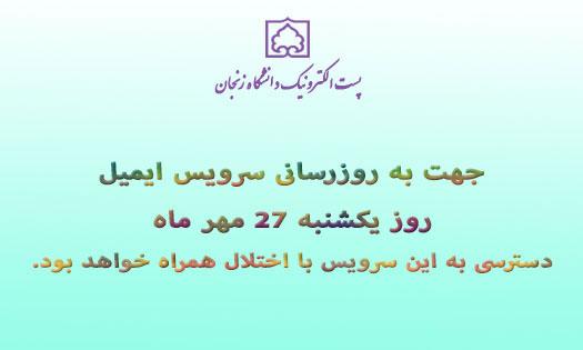 به روز رسانی سرور پست الکترونیک دانشگاه زنجان، روز یکشنبه 27 مهرماه