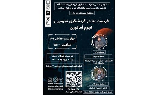 انجمن علمی نجوم با همکاری گروه فیزیک دانشگاه زنجان و انجمن علمی نجوم دانشگاه تبریز برگزار میکند: