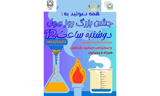 انجمن علمی دانشجویی شیمی برگزار میکند: جشن گرامی داشت روز مول روز دوشنبه ساعت ۱۲ دانشکده شیمی با سخنرانی اساتید گرانقدر همراه با پذیرایی