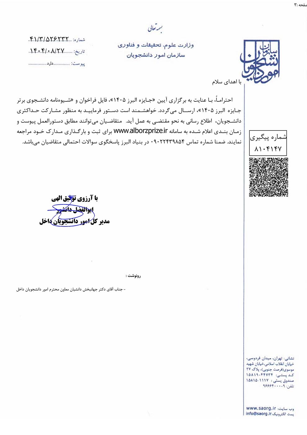 انتخاب دانشجوی برتر جایزه البرز 1405