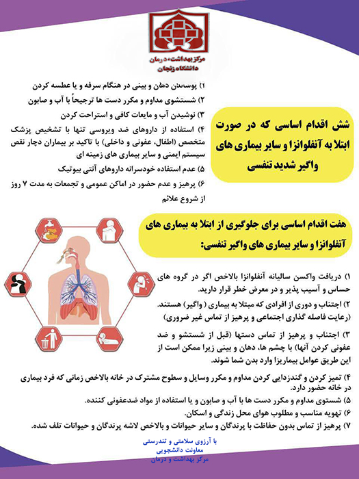 با توجه به شیوع بیماری های تنفسی لطفا به موارد ذیل توجه نمایید