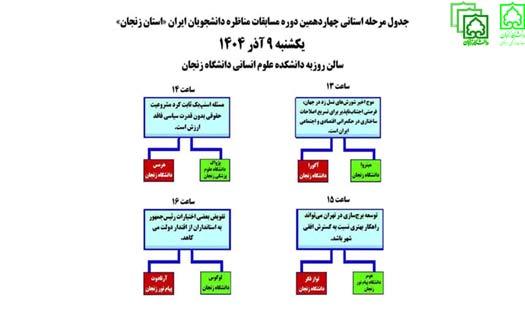 جدول روز دوم مسابقات مناظره دانشجویان ایران واحد زنجان